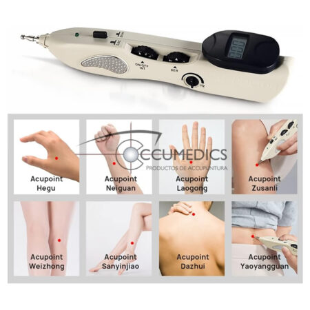 microcomputador con la acupuntura de la Medicina Tradicional China y la teoría de los meridianos. Se compone de un generador y electrodos multimodo de pulso de baja intensidad y baja frecuencia externos.